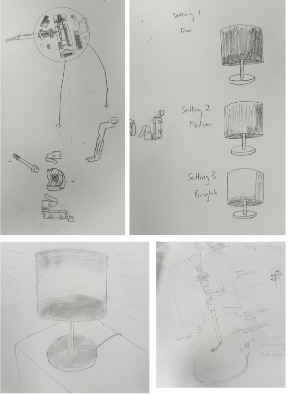 After analyzing the components of the lamp, we sketched out each individual piece and were able to piece together where and why each were assembled the way they were. Additionally, we discovered the context this lamp is intended to fit into.