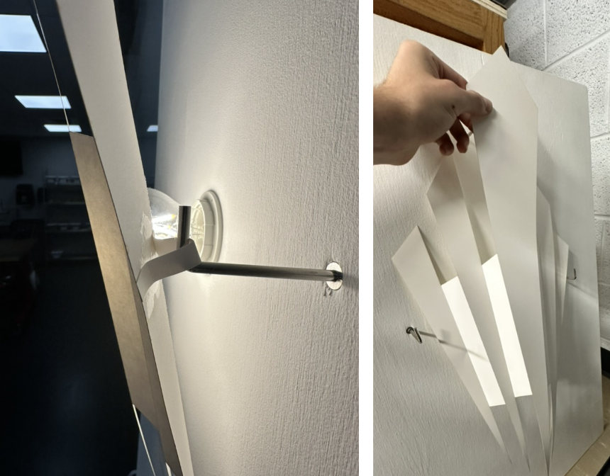 With the folds and designs finalized, it is time to assembly and place the shade on the board to test out the interaction between the shade and the bulb in the hope to identify issues with light diffusion between my intentions and the realized design.