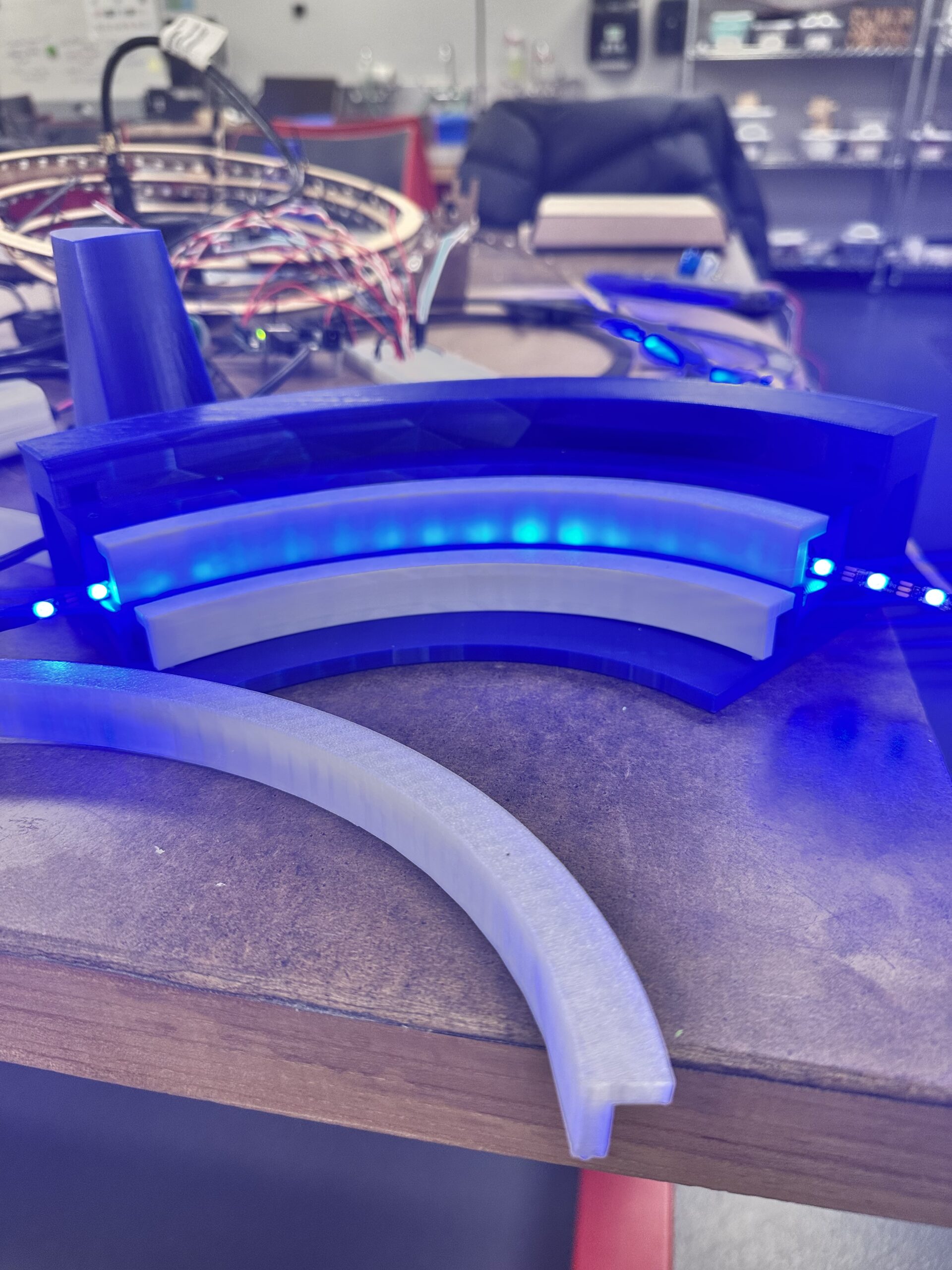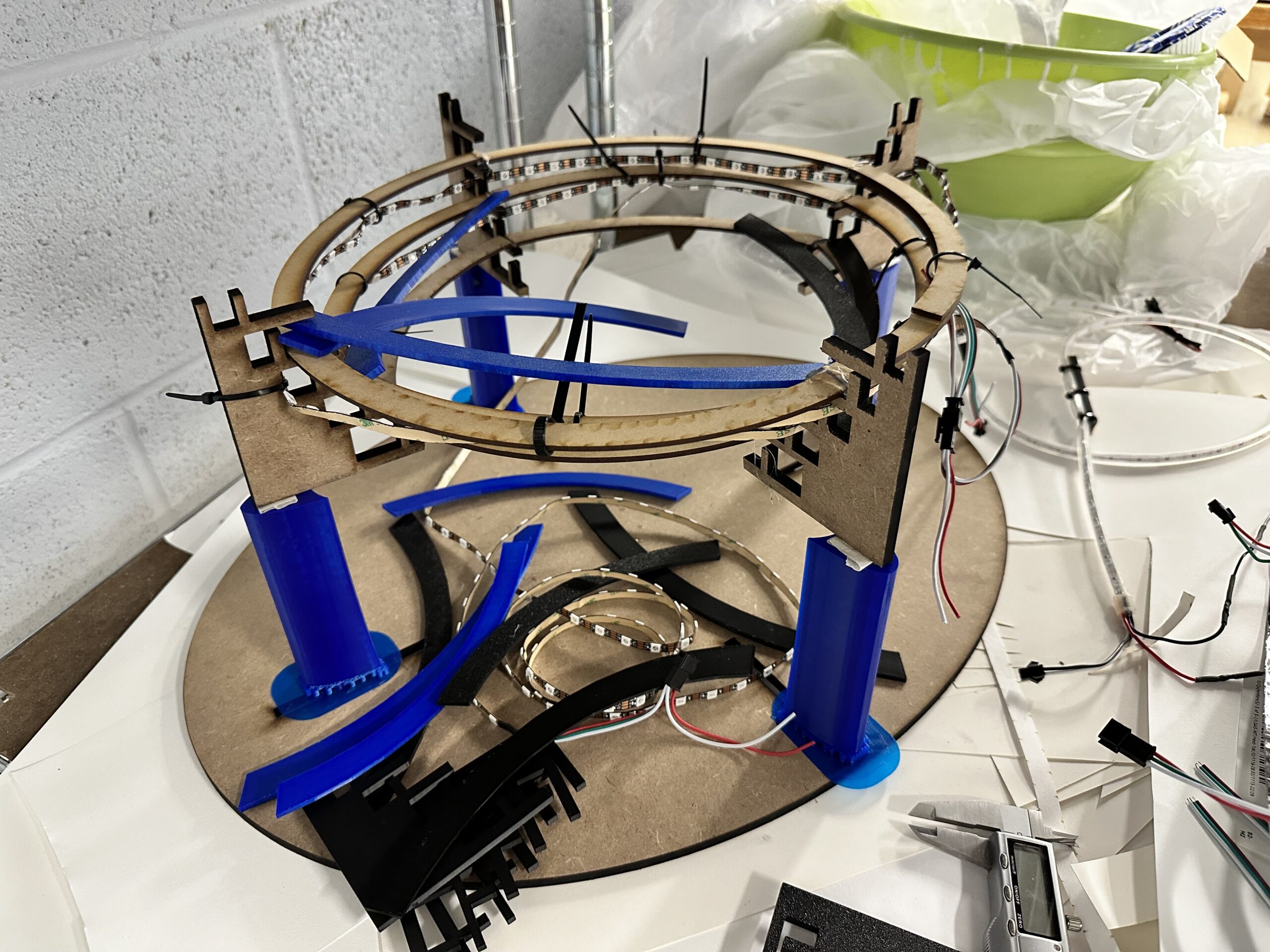 Using the CNC router, I carved out the pocket and traces for the lithophane light base and circuit board. And using sauder, I was able to install wiring, LEDs, resistors, and the dimmer.