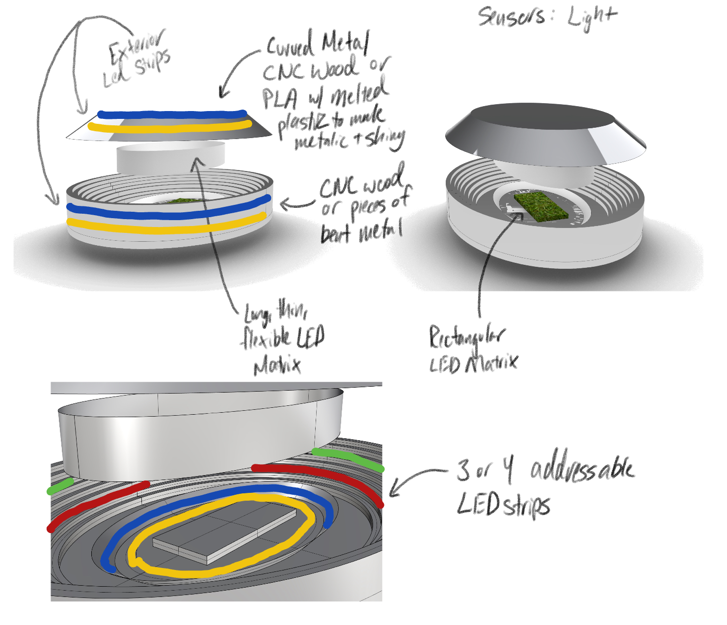 Using Solidworks, I used the tools to design my unique trophy-like shade and the traces of the circuit board.