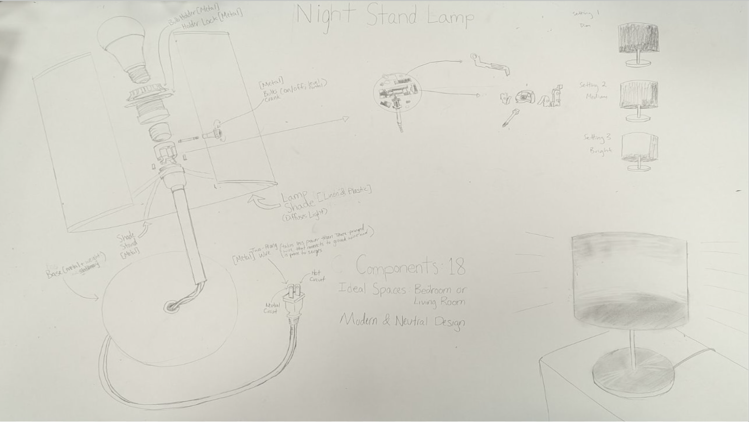 After analyzing the components of the lamp, we sketched out each individual piece and were able to piece together where and why each were assembled the way they were. Additionally, we discovered the context this lamp is intended to fit into.